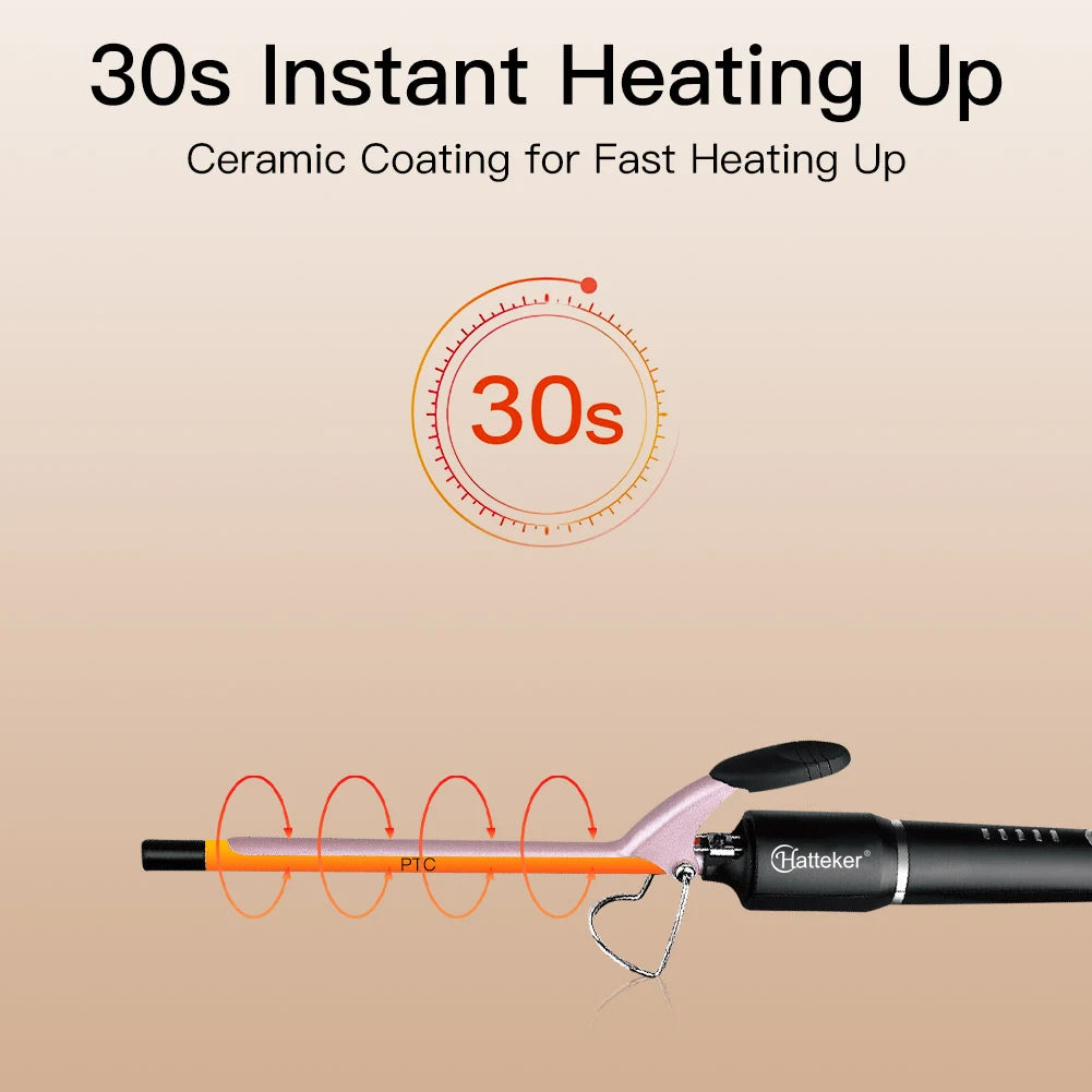 Hatteker 9mm Professional Hair Curler Ceramic Barrel Iron Smart Auto-Off Women's Wet/Dry Constant Temperature Protection Tool