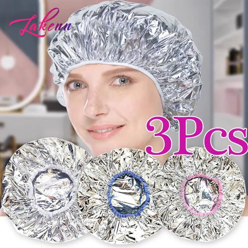 Multiple Use Hair Moisture Shower Cap Deep Conditioning Cap Aluminum Foil Hair Dye Cap Heating Cap Hair Treament Cap 3Pcs